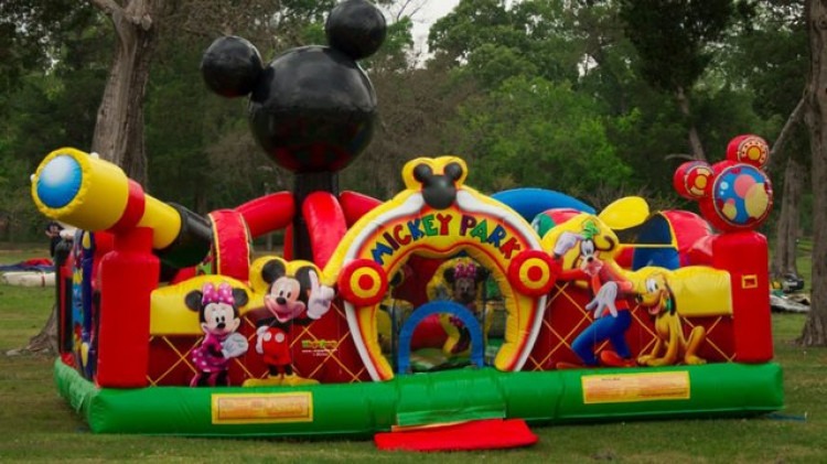 Our playland obstacle course is perfect for your toddler. An impressive 22ft x 22ft play area that your toddler can bounce, climb and slide into fun. The area is filled with colorful 3D popup that your little one may recognize instantly and a slide just their size. This playland is suggested for ages 3-6. Rent this for the day for the kiddos and slide on over and grab a water slide or obstacle for the parents.